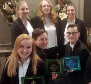 The group recently returned from a regional competition in Fitchburg, MA, with four bids to the American Moot Court Association National Championships in Dallas, TX, and multiple speaker awards.